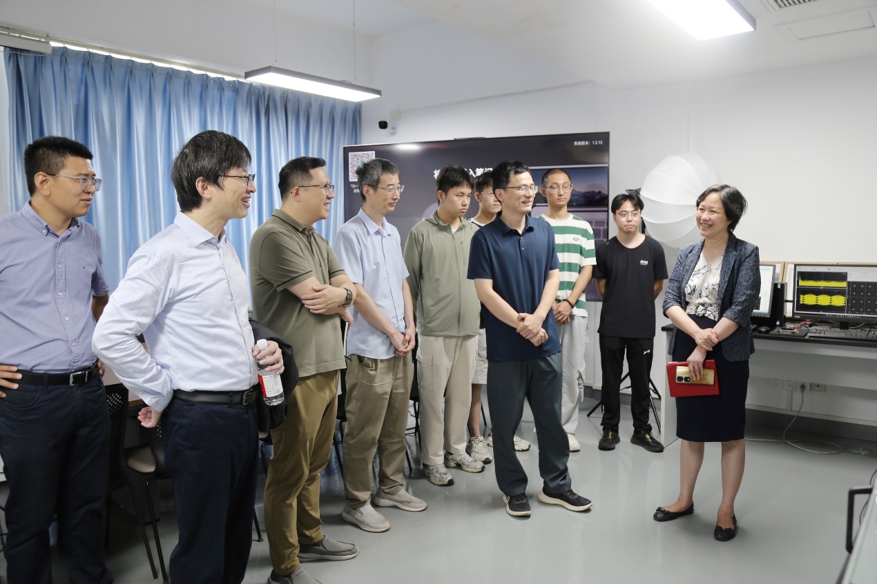 上午,程静副董事长、实验室与装备处张文处长、研究生院乔德礼副经理也来到迎新现场,细致了解迎新工作进展。随后,程静一行来到位于信息楼三楼的上海市多维度信息处理重点实验室,实地调研实验室的运行管理、科研进展与成果转化等情况。