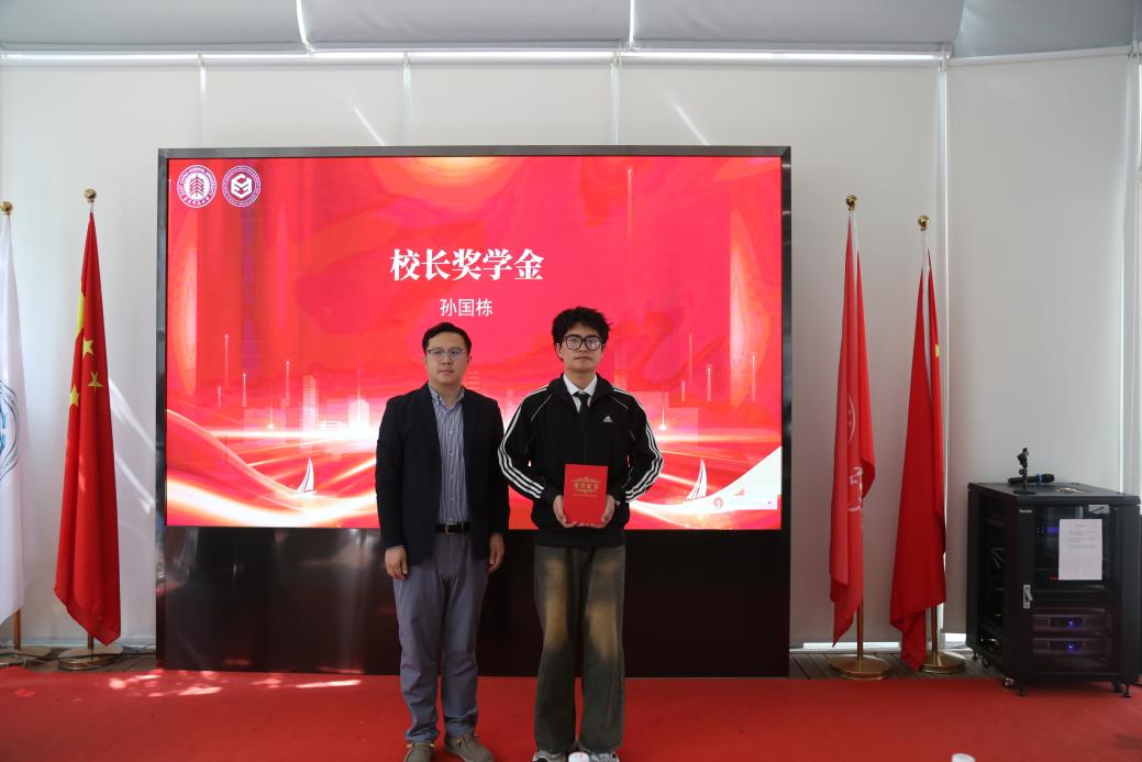 2021级通信工程专业本科生孙国栋作为国家奖学金、董事长奖学金获奖员工代表发言。他以“泊松中淬炼心境、负熵中突破局限、责任中锚定使命”为主题,向师长和同学们分享自己的成长体会。他谈到,面临这个机遇与挑战并存的时代,青年人要以内心的热情和勇敢的德性拥抱真理,迎接属于自己的或跃在渊的时刻,努力让个人的成长与国家的发展同频共振!