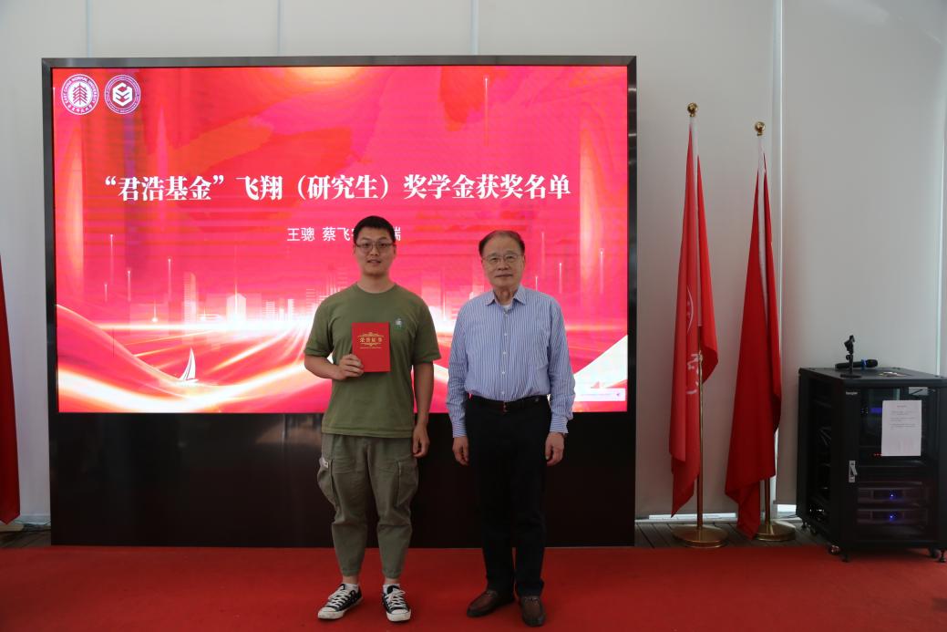 褚君浩院士为飞翔(研究生)奖学金获奖代表颁奖