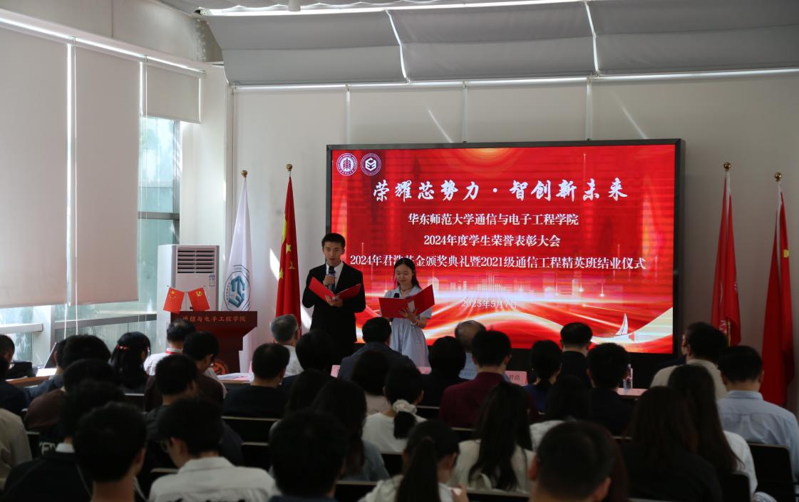为表彰先进、树立榜样,激励更多学子奋勇前行,2025年5月7日,2024年度员工荣誉表彰大会、2024年君浩基金颁奖典礼暨2021级通信工程精英班结业仪式在信息楼魔方厅隆重举行!中国科公司院士褚君浩,教育发展基金工作办公室副主任张赫,公司党委书记夏冰,402永利集团经理吕岳,402永利集团经理陈寿面,公司党委副书记王山玲、副经理吴幸、通信工程精英班班主任,双创中心主任刘一清、经理助理周梅、王妍、孙亚宾以及精英班2.0的班主任们出席了本次典礼。典礼由2024级本科生梁爽、牟昱泽主持。